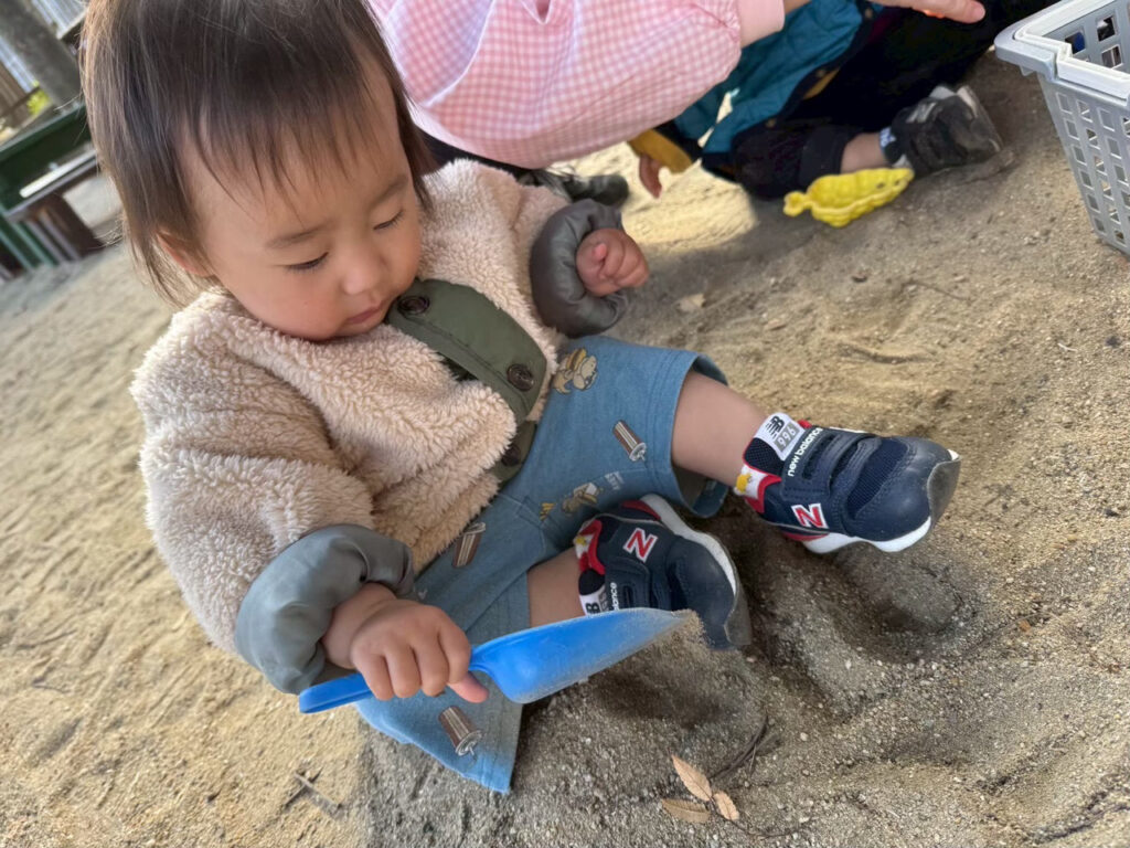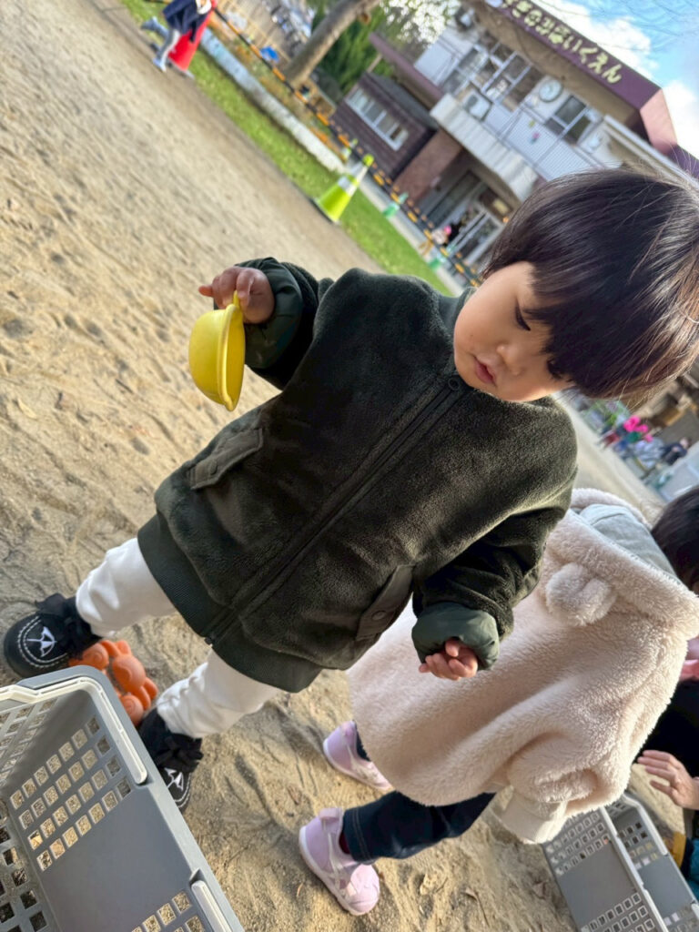 戸外遊びの幅が広がり、砂場遊びを楽しむ事が出来るようになりました。